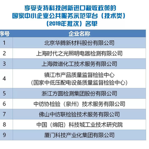 1.享受支持科技创新进口税收政策的国家中小企业公共服务示范平台(技术类)(2019年批次)名单