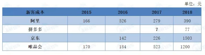 拼团模式,从第一个层面看,可以为拼多多低成本带来用户和收入。据《海豚智库》估算,2017 年拼多多的获客成本不超过 8 元,同期,阿里的获客单价已经超过 200 元。2018 年,拼多多获客成本虽然已经上涨至 140 多元,但仍是其他电商平台的三分之一。