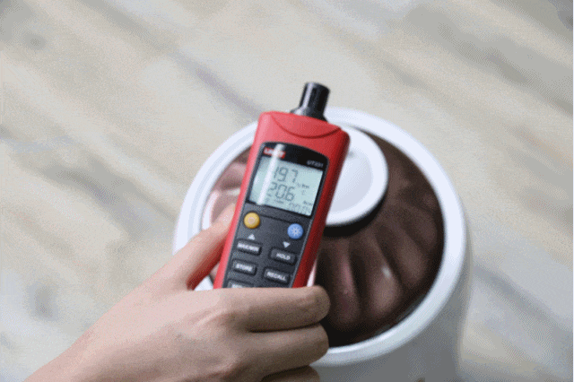 随后我们又测试了距离加湿器100CM的位置的湿度,根据测试仪实测结果为31.2%,与产品测试前数据并无太大差异,这也印证了我们的猜测,加湿器在开放环境下并未实现真正的空气加湿,加湿效果完全依靠雾气瞬时的飘散范围决定的。
