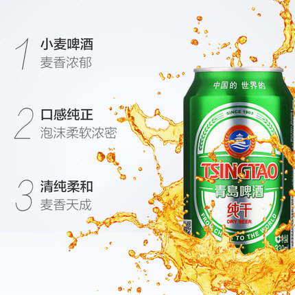 [天猫超市]青岛啤酒纯干10度330mL×24听