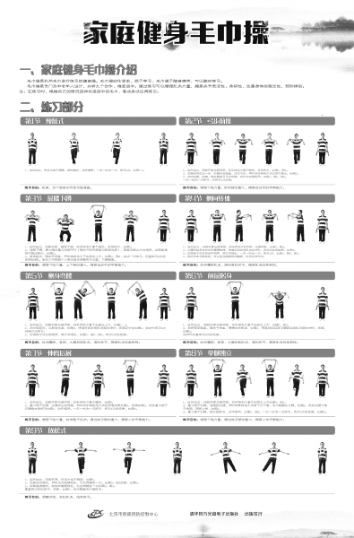“在动作设计之初,我们就考虑到健身操要简单易学、容易开展,适合团体锻炼,同时需要有观赏性和表现力。”祁琨说,设计健身操期间,项目团队经过收集体验老年人的反馈意见,几经修改,最终于2017年形成目前这一版的毛巾操。毛巾操针对跌倒锻炼的重点部位,着重加强下肢力量、腰腹力量、柔韧性、平衡能力的锻炼。全套操分为9节,只需要1条毛巾作为辅助器械,训练动作依次为预备练习、弓步前推、屈膝下蹲、侧向转体、侧身弯腰、前屈躬身、伸臂后展、单腿独立、放松练习。全套操做下来至少需要10分钟。