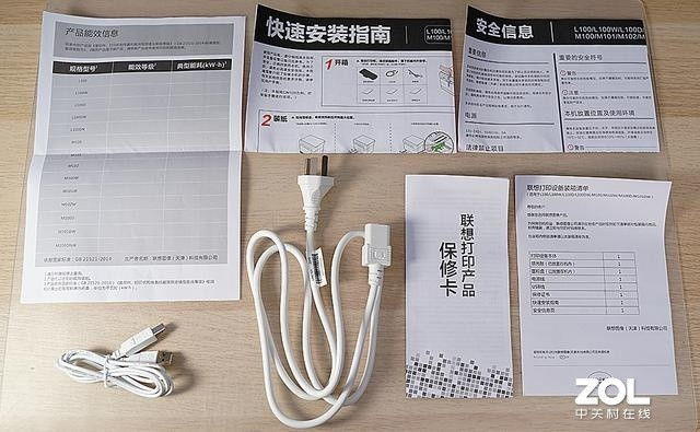 ▼附件东西不多,有安装指南、保修卡等纸质文件,还有电源线和USB连接线,并没有再送额外的耗材。