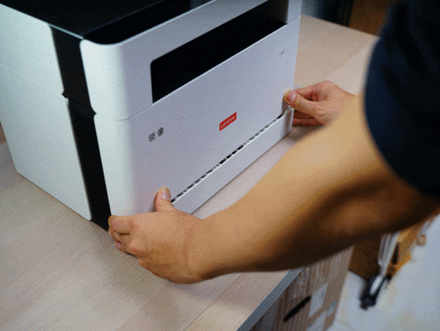 ▼取出打印机,M101DW顶盖为黑色,四周为白色,简简单单,方方正正,并不像传统打印机那样有浓重的办公风格,多了些居家的清新。