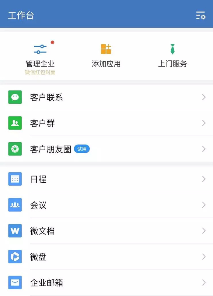 除此之外,企业微信本身还推出了几款工具,像会议、日程、微文档、微盘、指定回复、会话标记、聊天中快捷打开,以期提高办公场景下的沟通协作效率。