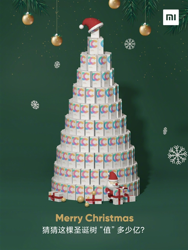 这棵圣诞树由小米CC9 Pro搭建,官方微博让广大网友猜猜“值”多少个亿。