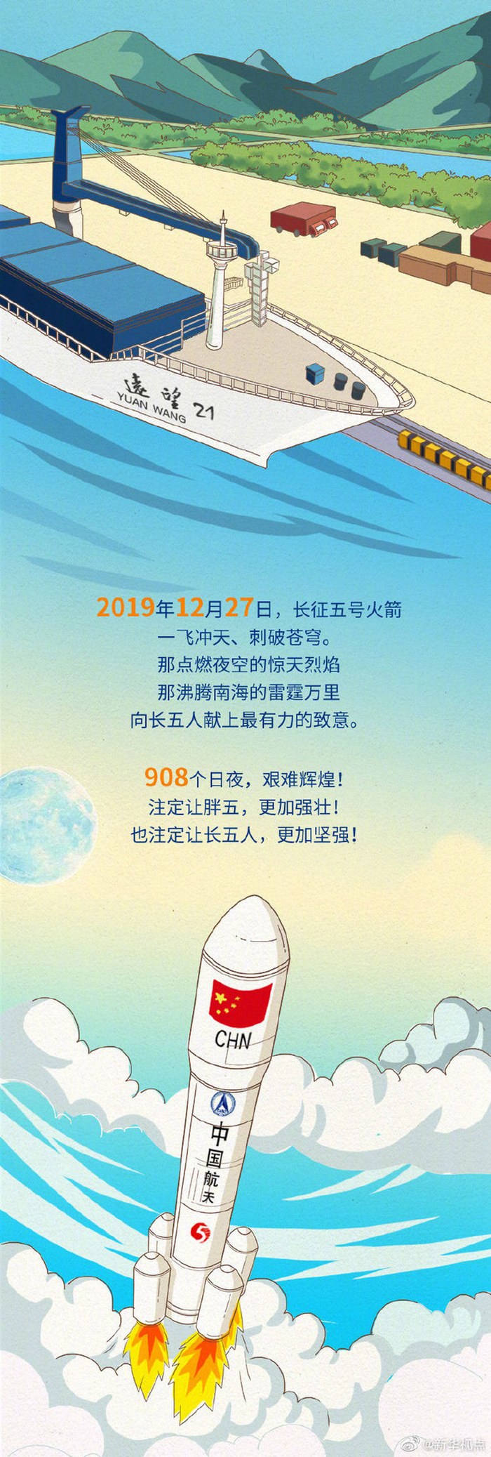 长征五号身后正是有一群航天人,他们数十年如一日,驯火牧天、携山揽海,眼里尽是星辰和远方。
