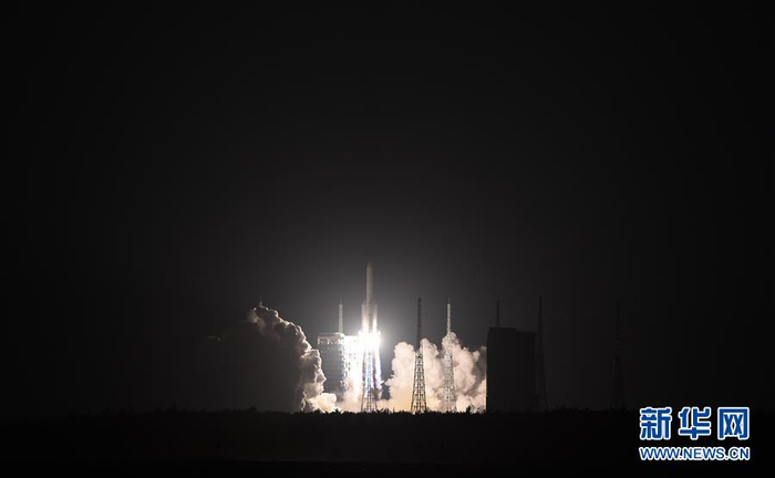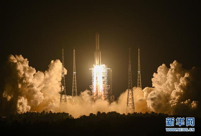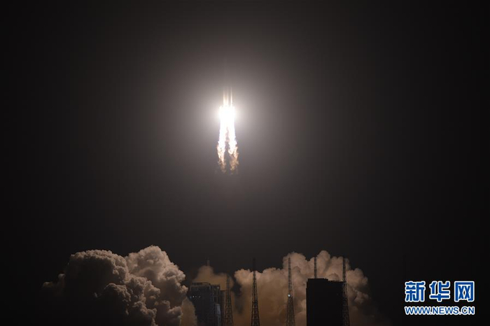 12月27日20时45分,长征五号遥三运载火箭在中国文昌航天发射场点火升空。 新华社发(张丽芸 摄)