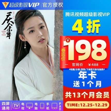 腾讯视频超级影视VIP会员 年卡 12个月+送月卡