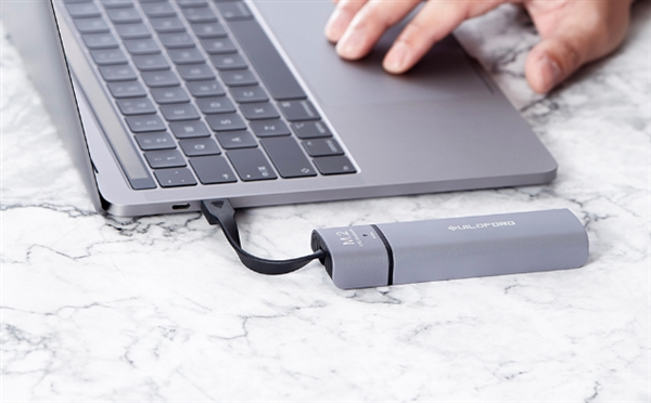 外观设计上,M.2移动硬盘盒采用铝合金轻薄外壳搭配PC注塑工艺,轻松导出热量,硬盘不发烫更安全。三围尺寸仅117x33x17mm,重54g,整体轻薄小巧,方便携带。