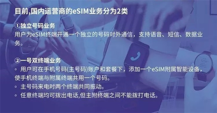 2019年12月20日,工信部正式批复同意中国联通eSIM穿戴设备一号双终端业务开通全国服务试验,中国联通成为目前国内唯一开通eSIM独立号码与一号双终端双业务全国服务试验的运营商,也是拥有自主知识产权eSIM管理平台的运营商。