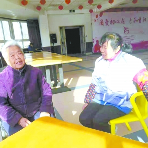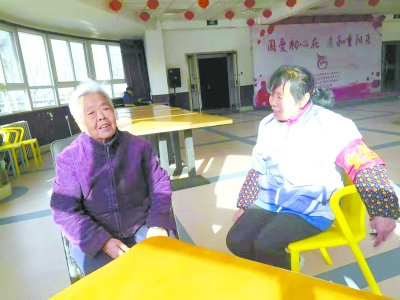 ▲国爱老年人康复中心张秀芹与护工交谈。