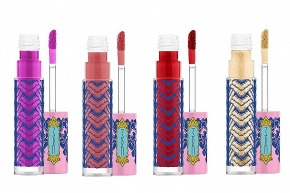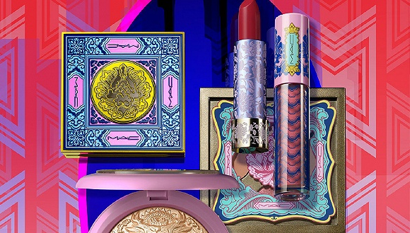 相较于常见的故宫联名系列里面对雕龙画凤图案的模仿,M.A.C此次将中国的传统元素进行了改造,它在外观上用饱和度极高的紫色、红色、粉蓝色和黄色进行装饰,其上的祥云图案被用颇具动漫风格的线条勾勒。
