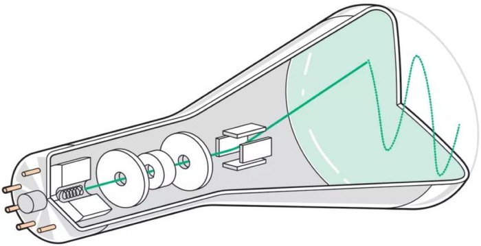 就像熟悉晶体管的工程师不知道放大管为何物一样,如今的工程师对于CRT已然毫不熟悉,在此我们可能需要快速回顾几个要点。示波器类的CRT与电视和大多数计算机显示器中的CRT不同。电视类的CRT使用位于真空管外部的线圈产生的磁场来偏转电子束,该电子束在整个屏幕上逐行扫描以形成所谓的光栅图像。
