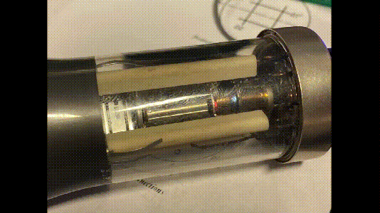 检查DG7-6的数据表(我在Frank Philipse的精彩档案中找到),表明阴极和加热器灯丝的一侧共用一个引脚。与Constantine进行了快速电邮沟通后,有了一种快速解决方案:我所要做的就是将阴极连接飞线到一根灯丝引线上。接着按照说明书的引导,我逐步完成了所需的校准步骤,在屏幕中心产生清晰明亮的测试点,而不是在侧面产生模糊的暗色椭圆形斑点。
