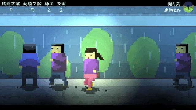不经意间的提醒,你想到了去找“另一个你”谈谈心。慢慢地推开101的房门,你看见“你”又苍老了许多。在“另一个你”的帮助下,你了解到可以去森林里感受自然,舒缓情绪,还能捡希望的花种。