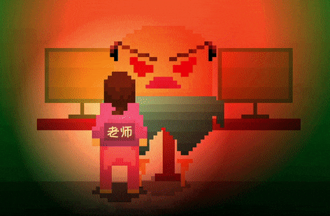 乘坐左边楼道的电梯上3层,一路小跑进入302后,诡异的背景音乐和两头身的导师一度让笔者怀疑这是否是一款恐怖游戏。