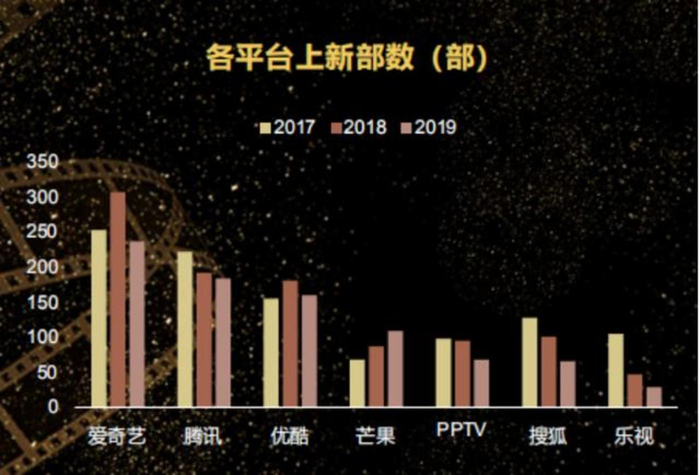从各平台情况看,爱腾优三家依然在实力强劲的第一梯队里。据云合数据显示,2019年各视频平台的上新剧集数量与2018年相比均有减少,爱奇艺的上新剧集相较其他两家数量更多。