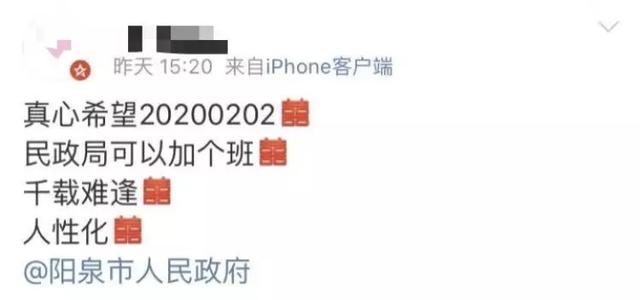 此外,不少计划领结婚证的网友,想在2020年02月02日去领证,然而,这天......是周日,原本民政局是不上班的!