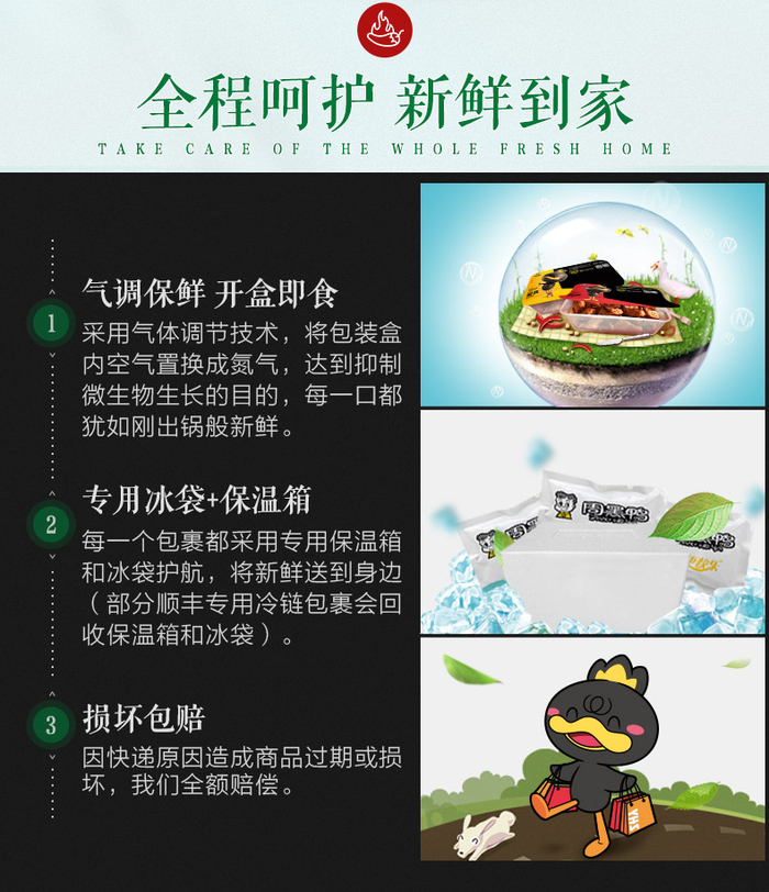 “锁鲜装”系列主要是方便保存,在具有气体阻隔性能的包装盒内充入99%的氮气,能有效减缓新鲜食品的变质速度,并且保持口感新鲜。