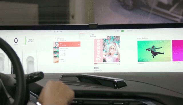 拜腾M-Byte最大的亮点就是配备一块48英寸的超大尺寸中控屏,长约1.25米,高约0.25米,分辨率为3840*720。器支持分屏显示,包括仪表信息、娱乐媒体、实时导航等,甚至还支持手势操作。