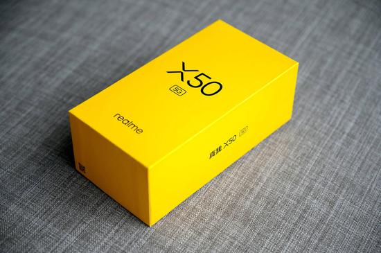 这次Realme 真我 X50 5G(下文简称“真我 X50”)的包装设计回归简约,以realme品牌特色的黄色作为底色,非常的亮眼。包装上也首次出现了“真我”的中文品牌名,这也是从真我X50开始的另一个小小的变化,为了和改用英文名的R字头友商有更好的区分,realme今后的产品名称中会加入中文名“真我”。
