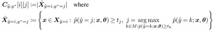 我们也鼓励通过阅读我们的原论文来理解符号的含义,这里面的中心思想可以理解成:当一个样本的预测概率大于每个类的阈值时,我们有信心将该样本记为实际上属于该阈值的类别。每个类别的阈值是该类中所有样本的平均预测概率。这种阈值形式将PU学习( Elkan & amp; Noto,2008,http://cseweb.ucsd.edu/~elkan/posonly.pdf)中众所周知的鲁棒性结果,泛化到多类别的弱监督。