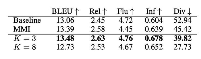 最后还有一项对话的实验,也验证了我们的结论,如表9。评价指标详见论文。