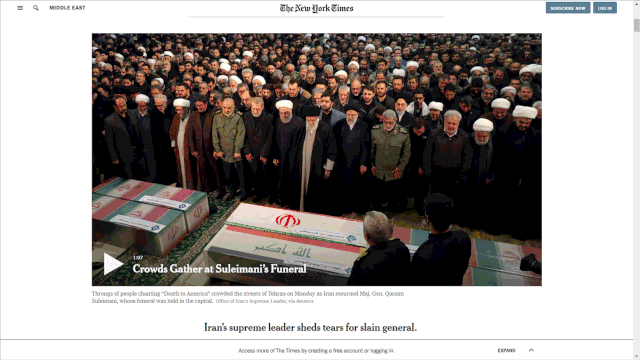 (报导截图来自,https://www.nytimes.com/2020/01/06/world/middleeast/iran-soleimani-trump.html)