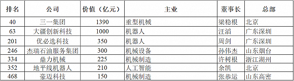 入选《2019胡润中国500强民营企业》榜单的机械制造及机器人相关企业。