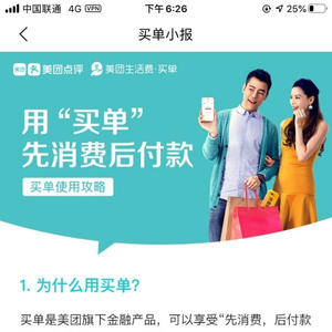 类似支付宝花呗,美团推出“买单”:本月买,下月还