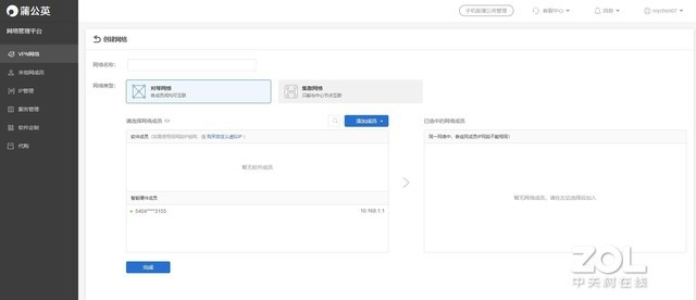 首先绑定在蒲公英官网注册的账号,然后就可以进入智能VPN组网页面。为自己创建的网络取个名字,然后将左侧希望加入网络的设备添加到右侧列表中,然后点击完成即可创建网络。完成创建后,组网列表中会显示相应的网络名称和在线设备,用户可以查看设备状态并进行远程管控。