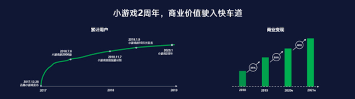 此次公开课,微信小游戏首次披露:上线至今,小游戏平台已经累计为超过10亿用户提供过内容服务,在2019年小游戏的商业价值较2018年增长超35%。