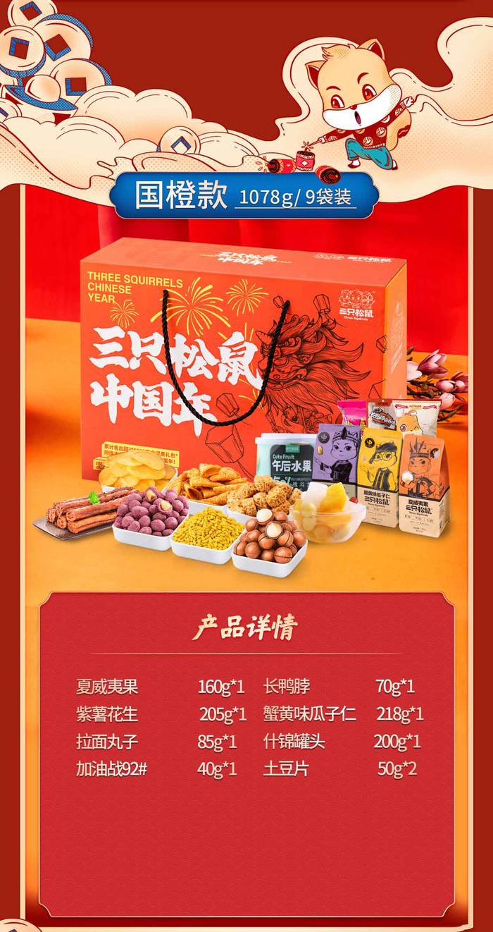 鼠年好礼,三只松鼠年货坚果大礼包1078g装
