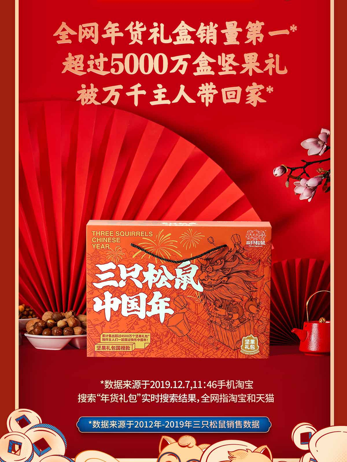 • 点此享受鼠年好礼,三只松鼠年货坚果大礼包1078g装53元:领券并购买。