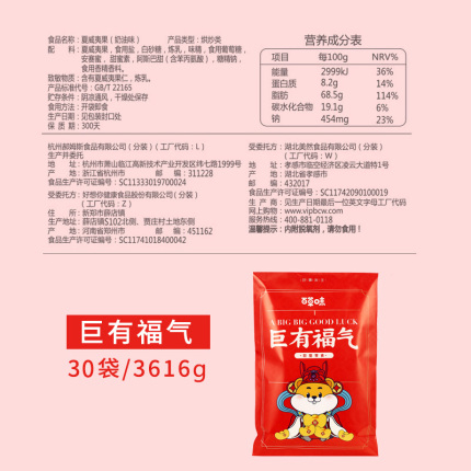 30袋巨有福气,百草味年货零食压岁大红包3616g装