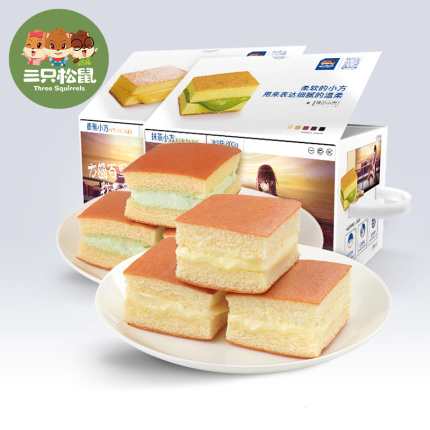 抹茶/香蕉细腻夹心,三只松鼠小方蛋糕750g整箱