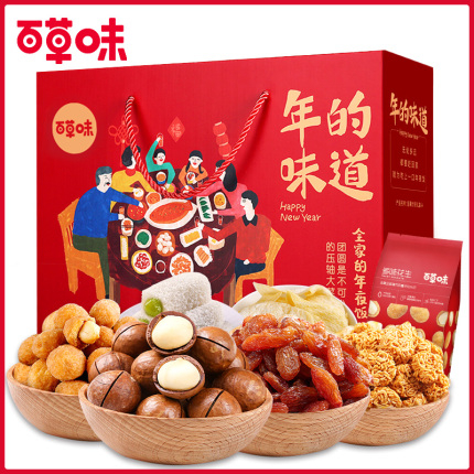 全家的年夜饭,百草味年货坚果大礼包1030g装