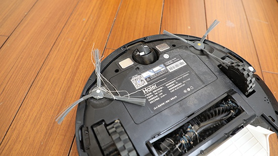 不过在测试中,小编发现了一些使用中的小问题,一些长条形的线等物品容易被扫地机器人吸走然后缠绕到边刷或者滚刷上,这容易出现在清理地毯等一些编织型的物品上,这与扫地机器人的清扫原理有关,它是边滚边清扫的,这些东西确实容易缠绕,在日常清理中如果有这些物品我们也要事前清理,这样才可以让扫地机器人更顺利的工作。