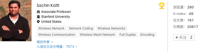 斯坦福大学的Wireless Networks领域著名学者Sachin Katti排名第一。在这一领域,印度裔学者居多,华人中阿里巴巴的张明博士位居第 13 名。