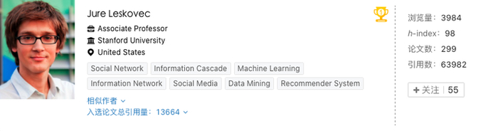 数据挖掘领域著名的青年学者Jure Leskovec排名第一,而这一领域的巨擘韩家炜则排名第三。这也说明,AI 2000 的排名更加侧重“最新”的影响,而非“资深”。值得注意的是,数据挖掘领域也是华人最为擅长的领域之一,前 10 名中有七位都是华人学者,按先后顺序分别为韩家炜(3)、陈天奇(4)、陈卫(6)、俞士纶(7)、王亚军(8)、唐杰(9)、郑宇(10)。