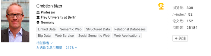 Christian Bizer排名第一。该领域前 100 名中无一华人。