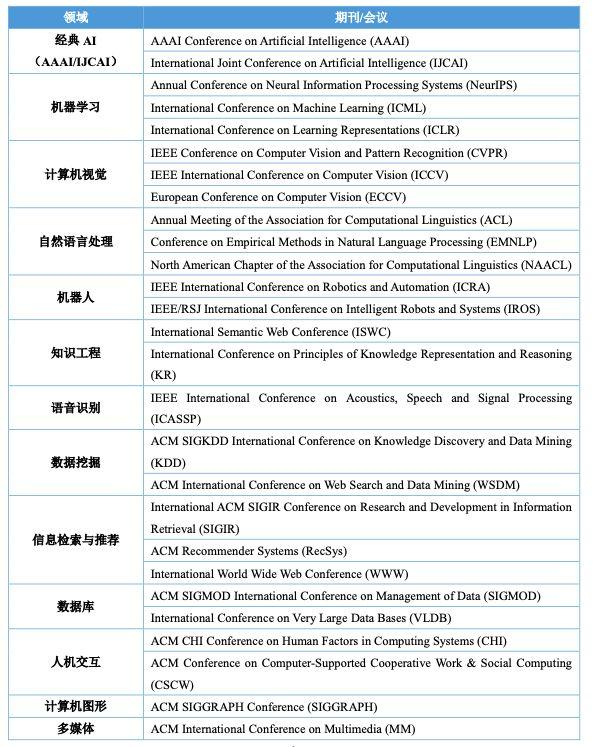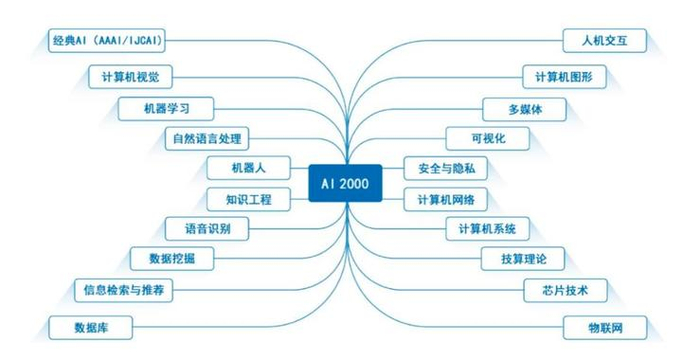 20个子领域分别为:经典AI(AAAI/IJCAI)、机器学习、计算机视觉、自然语言处理、机器人、知识工程、语音识别、数据挖掘、信息检索与推荐、数据库、人机交互、计算机图形、多媒体、可视化、安全与隐私、计算机网络、计算机系统、计算理论、芯片技术和物联网。