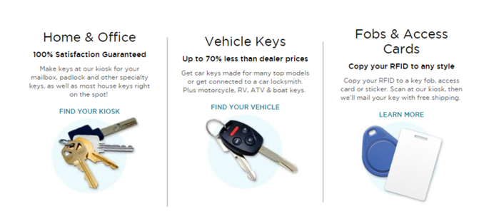 雷锋网在 KeyMe 官网上了解到,该公司的配钥匙业务主要包括 3 个场景: