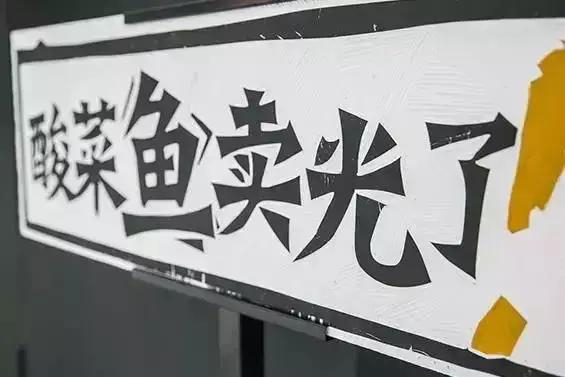 太二餐厅装修为黑白简洁色调,“酸菜比鱼好吃”、“做宇宙第二好吃的酸菜鱼”的标语随处可见。