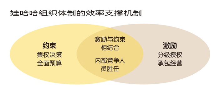 激励与监督是企业管理的重要内容,而且需要努力实现两者兼容,做到有监督的激励,有激励的监督。娃哈哈一方面实施全面预算,进行总体性监督,控制风险的范围和程度;另一方面实施具有承包责任制思想的激励制度,充分激发员工的工作积极性与创造性,将员工成长与企业成长有机结合。从整体上看,娃哈哈实施了一种“总体风险可控、内部能力激活”的组织制度。