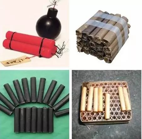 炸弹、照明弹、燃烧弹、烟幕弹、信号弹、催泪弹、毒气弹、手雷、手榴弹等弹药;炸药、雷管、导火索、导爆索、爆破剂、发爆器等爆破器材;礼花弹、烟花、鞭炮、摔炮、拉炮、砸炮、发令纸等各类烟花爆竹以及黑火药、烟火药、引火线等烟火制品;上述物品的仿制品。