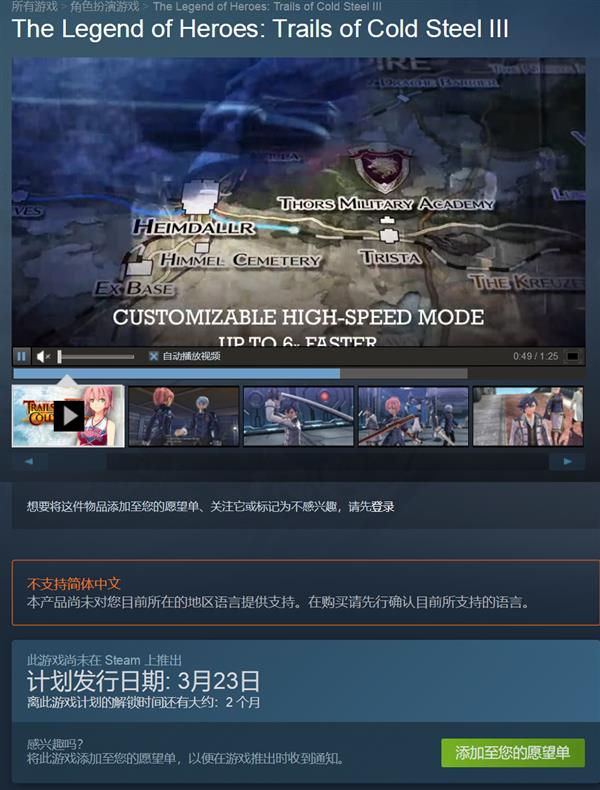 原标题:《闪之轨迹3》PC版将于3月23日登陆steam:暂时不支持中文