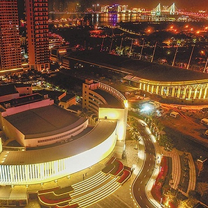 夜色中的海口湾演艺中心。图片来源:海南日报