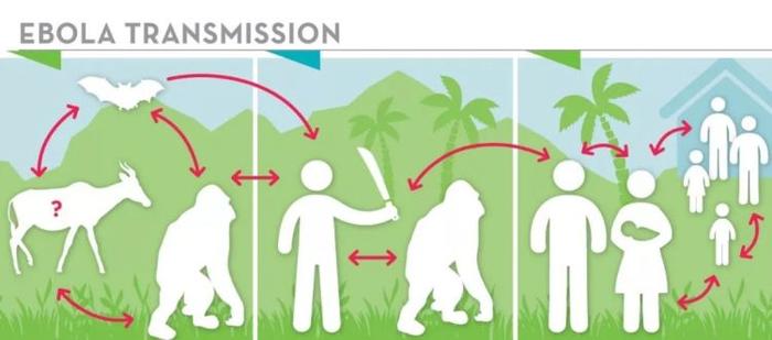 再看看埃博拉是怎么来的。在非洲,野生动物是肉食类来源之一,尤其是在农村,像猩猩、猴子和蝙蝠都是他们主要的狩猎对象。通过这样的方式,埃博拉病毒多次从丛林走向村庄,最后走向城市。