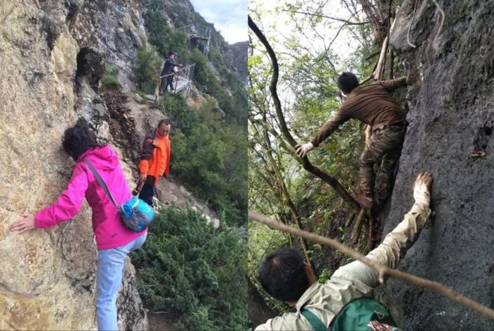 很多时候都是没有路的,我们要翻山越岭,自己来开路。有时候蝙蝠洞就在不远的山头上,直线距离不过几十米,走过去却要花几小时。有的时候蝙蝠洞里面很大,但是洞口非常小,所以要爬着进去。